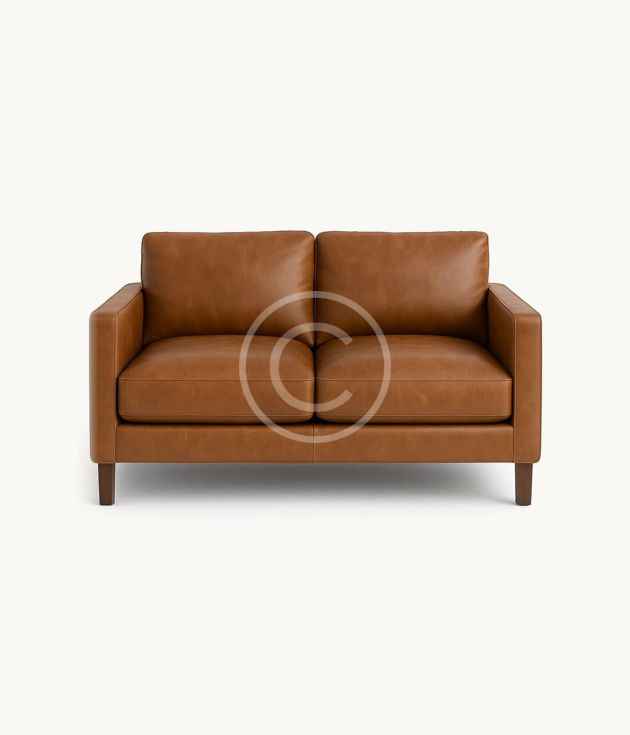 Modern tan leather loveseat